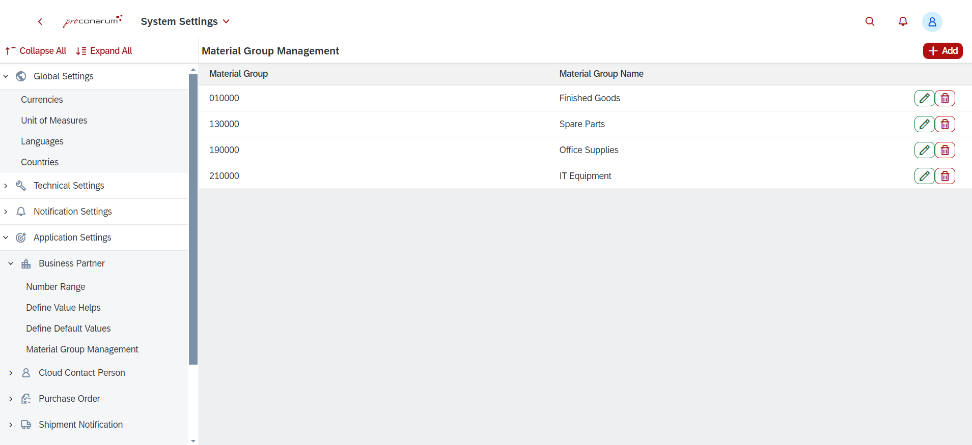 Here, you define the material group IDs, which you use in your SAP ERP systems. Material groups can be assigned commodities groups.