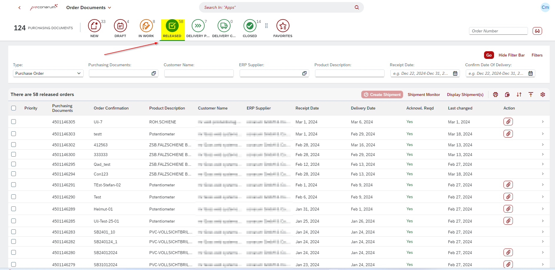 When the supplier confirms the purchasing document successfully, the purchasing document gets the status Released.